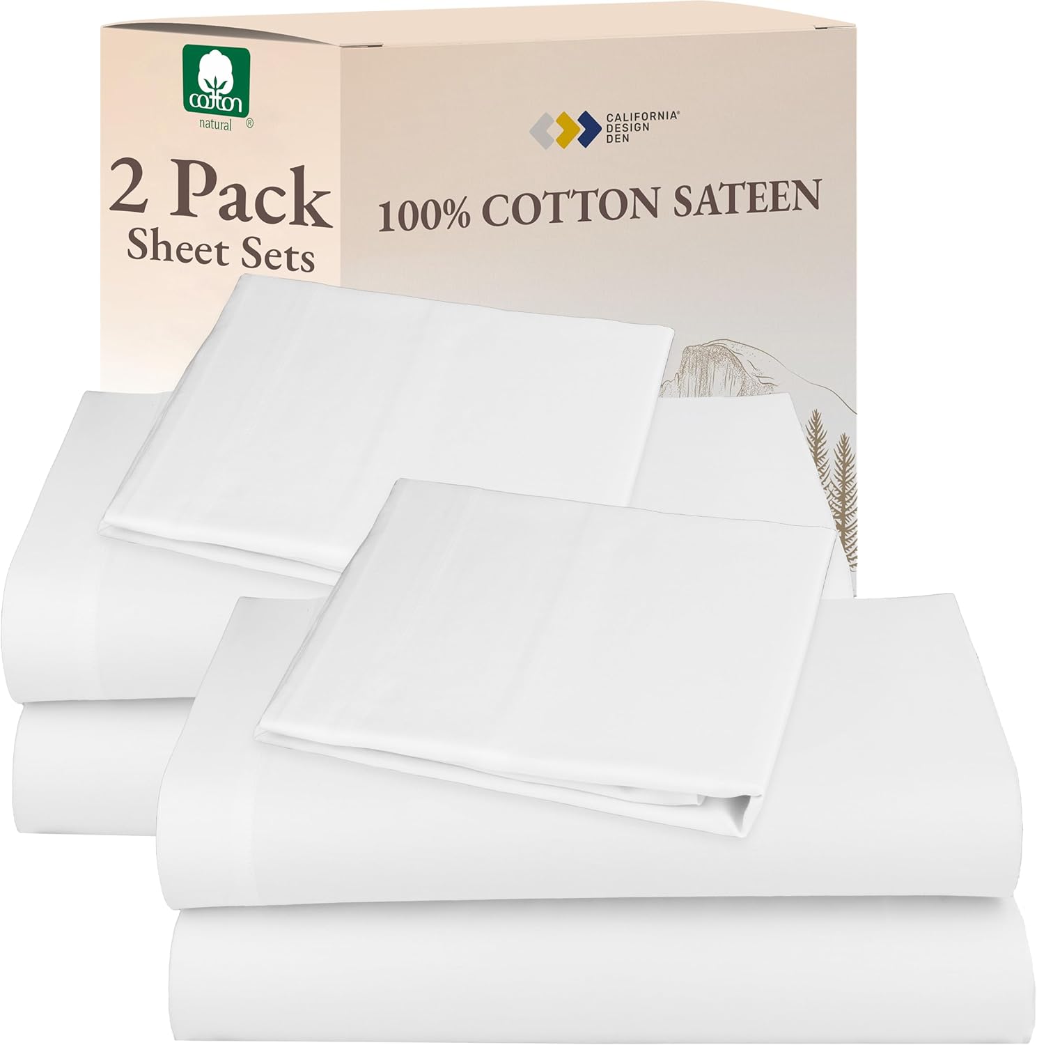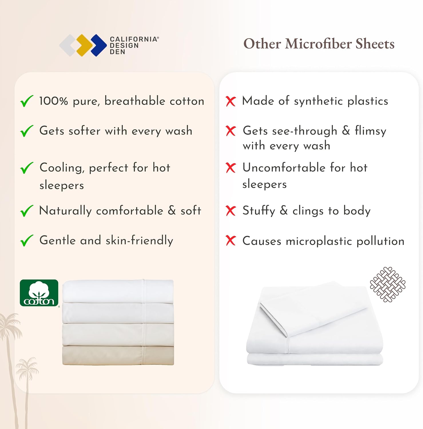 California Design Den Queen Sheet Set - Natural 100% Cotton Sheets Queen Size Bed Set with Deep Pockets, Soft Sateen Weave, Breathable and Durable Bedding (White)