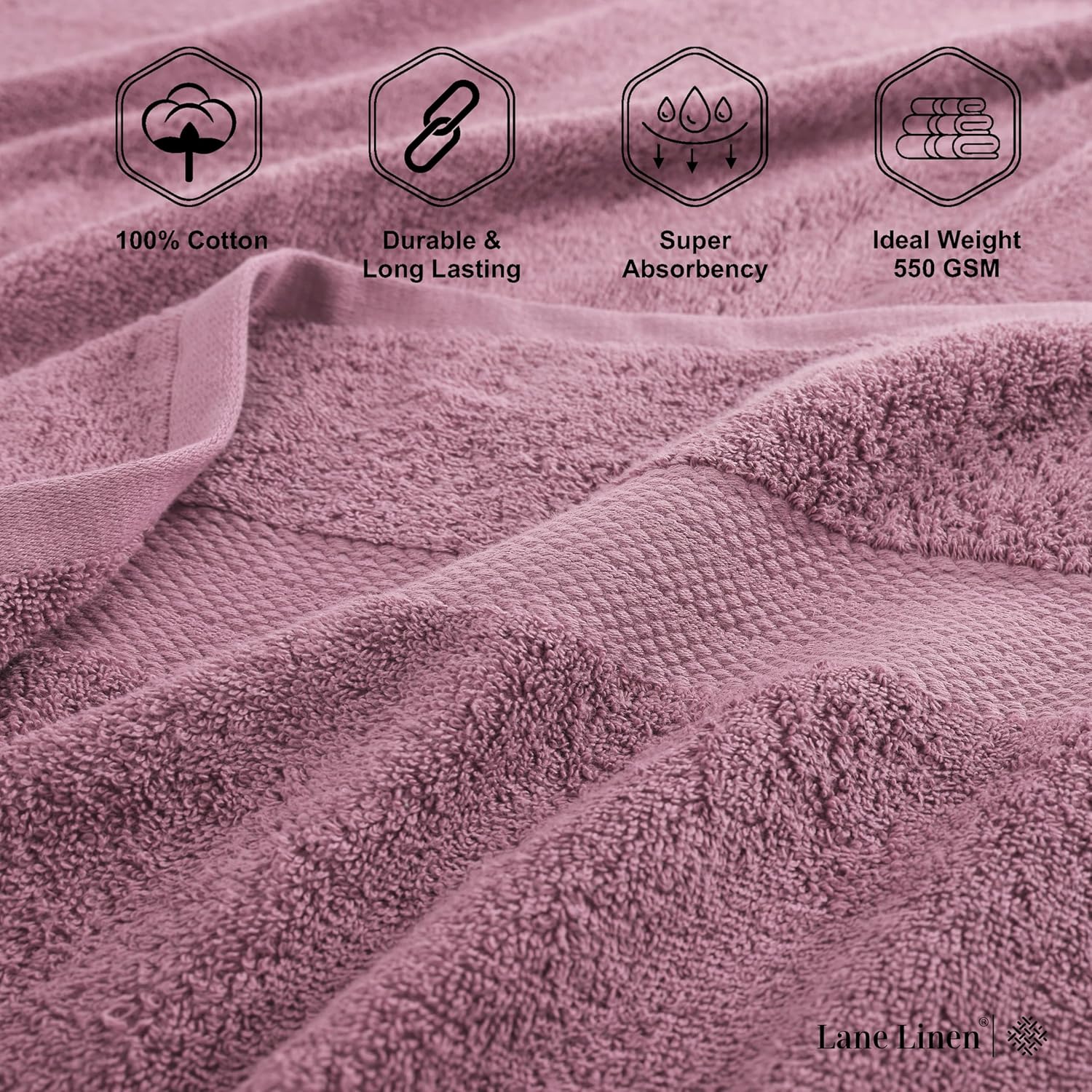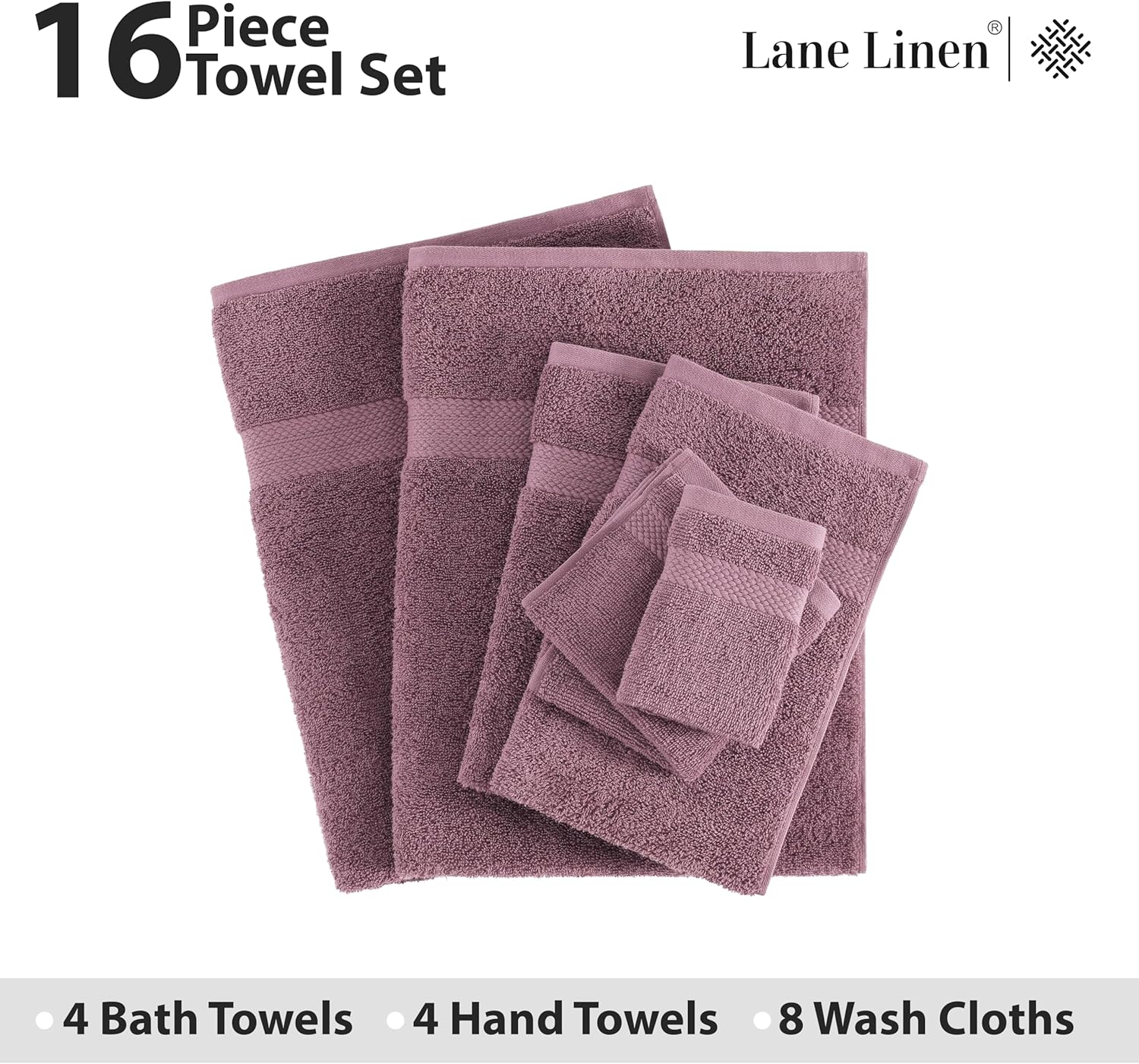 LANE LINEN 100% Mercerized Cotton Luxury Bathroom Towel Set - 16 Pcs - Super Soft, Fluffy & Highly Absorbent - 4 Bath Towels, 8 Washcloths, 4 Hand Towels - Pre Shrunk, Pet Friendly - Wishful Mauve