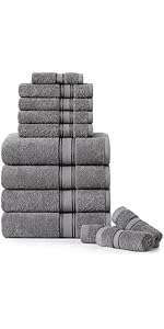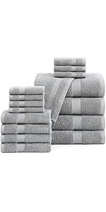 LANE LINEN Towel Set of 12 – 100% Ring-Spun Cotton, Zero Twist, 4 Large Bath ...