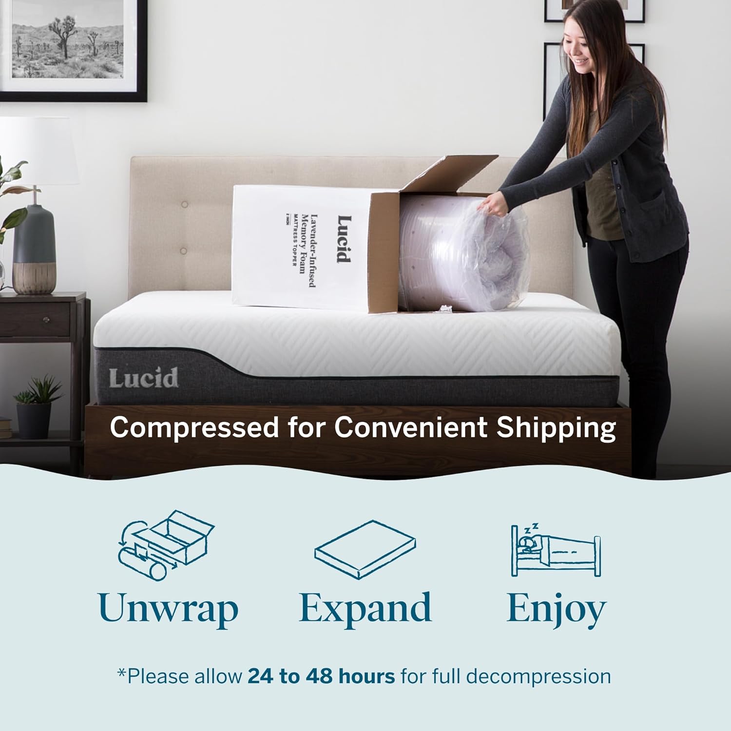 Yes! We make it easy. Lucid memory foam toppers come compressed and rolled in a box, are easy to move, and set up in seconds. Just unbox it and let it decompress for 24 to 72 hours before sleeping on it.